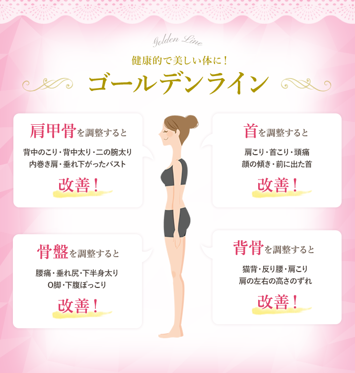 美容矯正・小顔矯正は、バスト、ヒップアップ、ウエストのくびれ、お腹引き締め・美脚を実現。代謝UPで健康で痩せやすい体へ